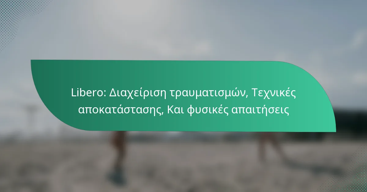 Οι παίκτες λίμπερο μπορούν να διαχειριστούν τους τραυματισμούς μέσω ενός συνδυασμού άμεσης πρώτης βοήθειας, έγκαιρης ιατρικής αξιολόγησης και δομημένης αποκατάστασης. Η κατανόηση των κοινών τύπων τραυματισμών και η εφαρμογή στρατηγικών πρόληψης είναι απαραίτητες για τη διατήρηση της απόδοσης και την εξασφάλιση γρήγορης ανάρρωσης.