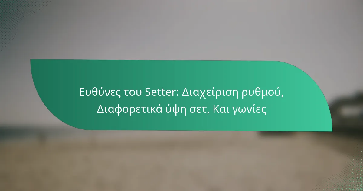 - Ποικιλία ύψους σετ: Η προσαρμογή του ύψους του σετ μπορεί να αλλάξει τον χρονισμό για τον επιθετικό, επηρεάζοντας την ταχύτητα της επίθεσης.